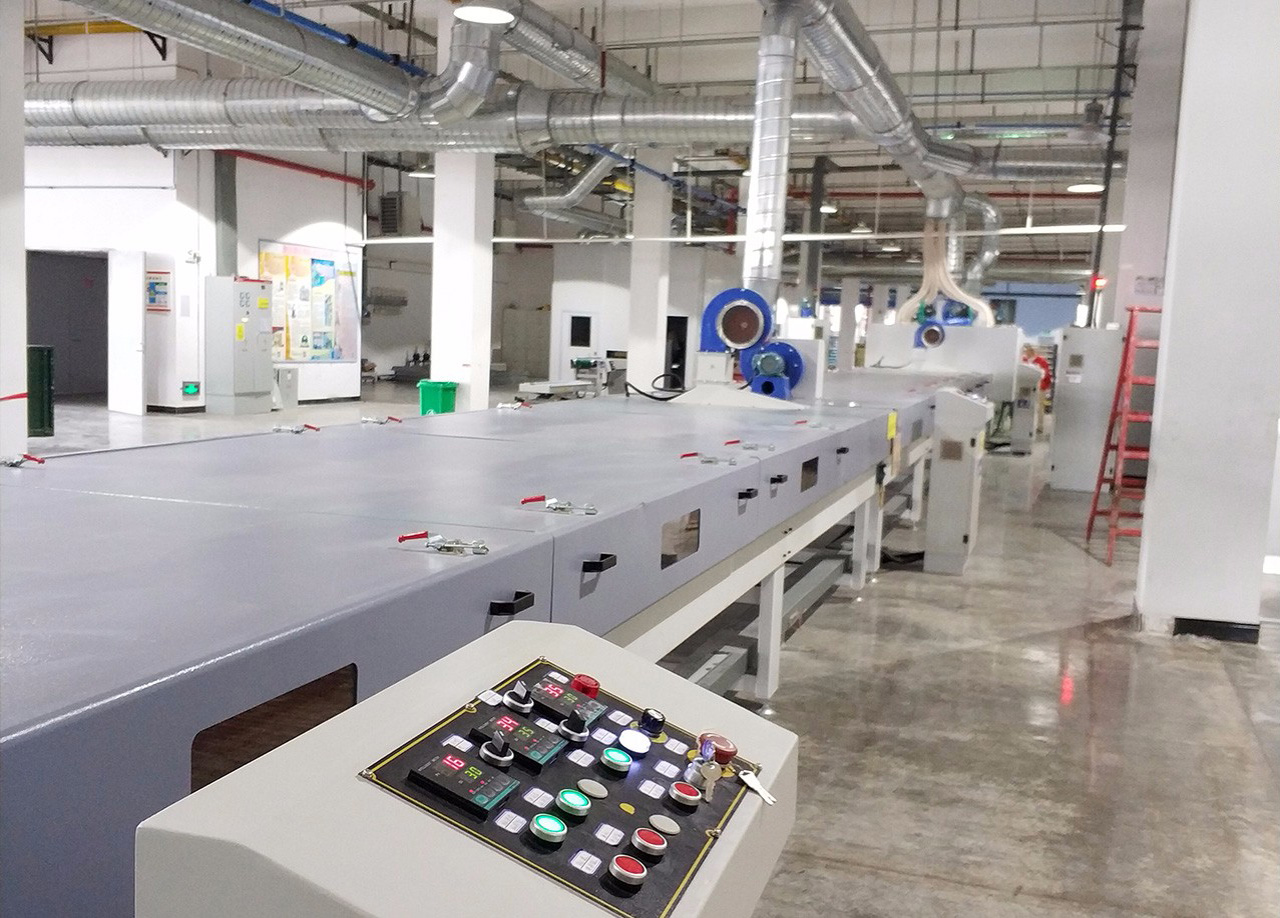 工藝要求 UV底漆、水性色漆、水性LED-UV面漆 產(chǎn)品種類 膜壓PVC櫥柜門板、定制衣柜、線條 產(chǎn)線數(shù)量 3條 設(shè)備特色 LED-UV固化系統(tǒng)、立體干燥房配2臺,待干1小時 生產(chǎn)產(chǎn)能 UV底漆噴涂線:1800m2/8h (生產(chǎn)員3人/線)