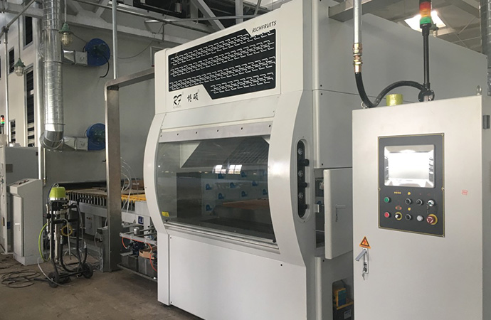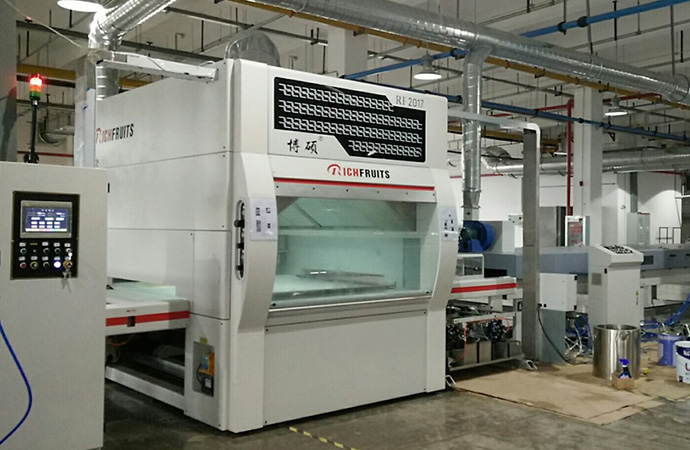 工藝要求 無溶劑UV底漆、水性面漆 產(chǎn)品種類 全屋定制、櫥柜、木門、線條 產(chǎn)線數(shù)量 2條 設備特色 面容積清洗皮帶系統(tǒng),年節(jié)約清洗劑30萬。 生產(chǎn)產(chǎn)能 UV底漆噴涂線:1800m2/8h (生產(chǎn)員3人/線)