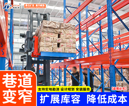 ★窄巷道通道比一般的橫梁式通道要窄,大概在1600mm-2000mm左右,大大的提高了倉(cāng)庫(kù)的空間利用率