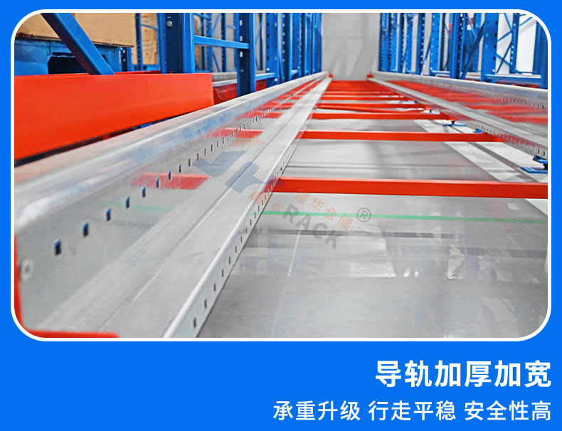 存貨:由叉車將貨物放在貨架巷道導(dǎo)軌的前端,通過無線電遙控操作的建華穿梭車,可以承載托盤貨物在導(dǎo)軌上運(yùn)行;